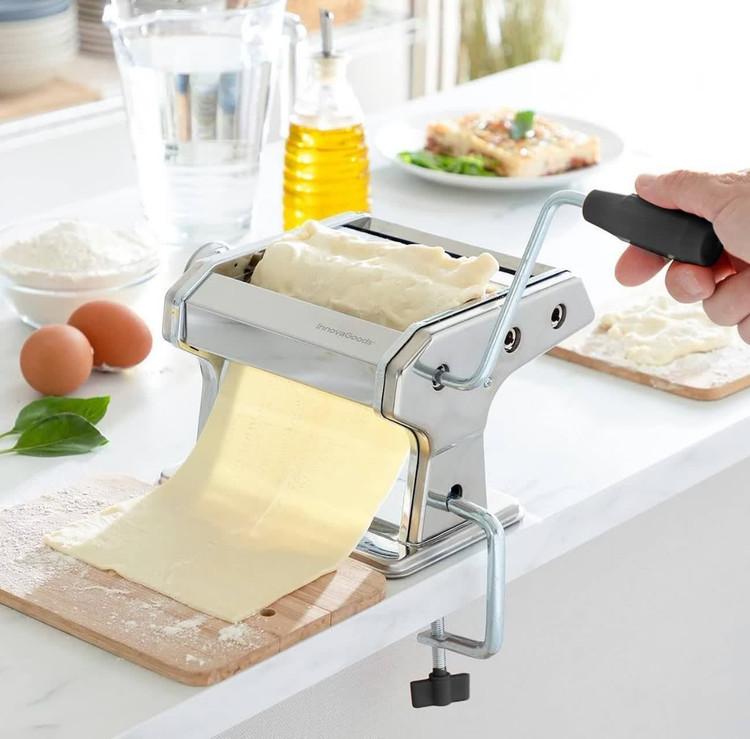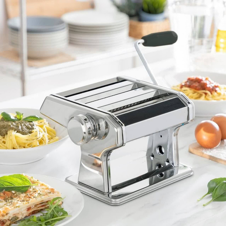 رول پهنکننده + تیغه رشتهبر: دارای رولر برای پهنکردن و تیغه برای برش رشته (معمولاً شامل تیغههای رسمی برای اسپaghetti و فتوچینی)