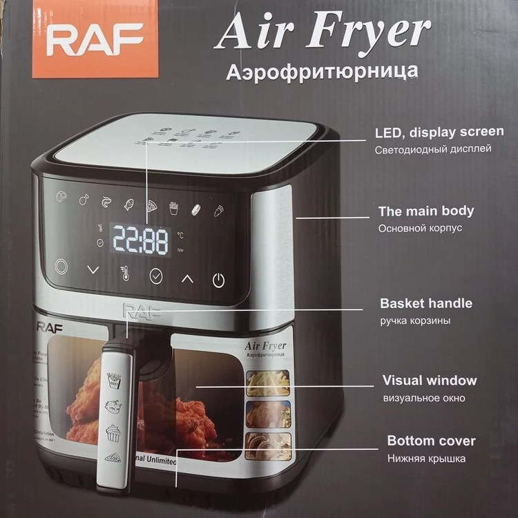 با سرخکن RAF 6.5L تجربهای متفاوت از آشپزی سالم و سریع داشته باشید. فناوری گردش هوای گرم (Hot Air Circulation) به شما امکان میدهد غذاها را با کمترین روغن و بدون چربی اضافی آماده کنید.