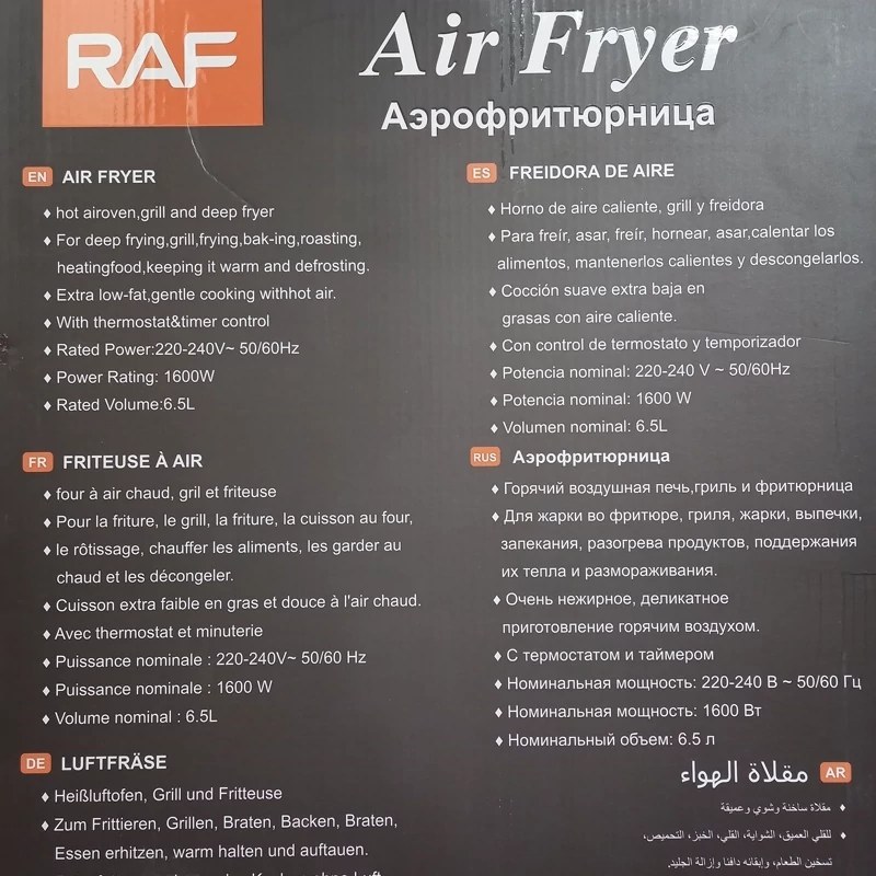 🍟 سرخکن بدون روغن RAF مدل 5350 – ظرفیت ۶٫۵ لیتر، توان ۱۶۰۰ وات