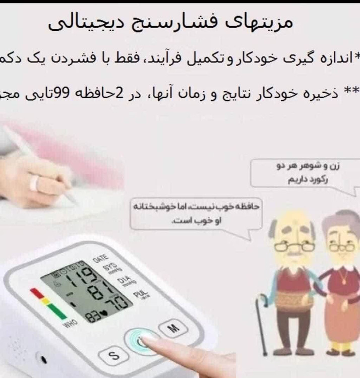 صفحه نمایش دیجیتال بزرگ و خوانا نمایش فشار سیستولیک، دیاستولیک و نبض نمایش نتایج به صورت واضح و راحت