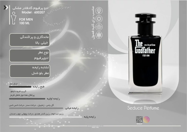 عطر گادفادر بلک با تشابه رایحه Chanel Bleu de Chanel نه فقط یک عطر است، بلکه یک بیانیهای از سبک و شخصیت است. این عطر برای مردانی است که خود را در مسیر پیشرفت و موفقیت میبینند، کسانی که بیپروا و متفاوت هستند و با هر قدم خود، تاثیری فراموشنشدنی میگذارند. بسته بندی این عطر هم به صورت هارد باکس (کادویی ) در اختیار شما قرار میگیرد .