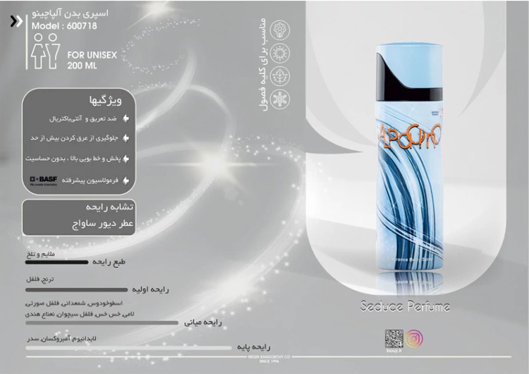 اسپری آلپاچینو از جذابیت خاصی برخوردار است و به دنبال خود، برای شما انرژی و نشاط دو چندانی به ارمغان خواهد آورد؛ با این محصول می توانید حس سرزندگی و شادی را تجربه کنید.