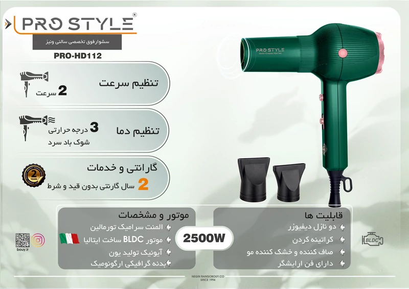 سشوارفوق تخصصی سالني ونیز PRO-D112 Venice 2500 W BLDC