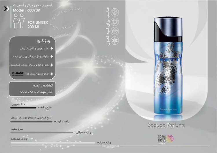 این محصول مردانه خوش بو با رایحه خنک و شیرینی که در آن به کار رفته است ماندگاری بسیار مناسبی دارد و مورد استقبال بسیاری از جوانان قرار گرفته است.اسپری پرتی اسپرت به مردان با اعتماد به نفس، قوی، شجاع و پرشور تعلق دارد. این اسپری که تجسمی از مرد مصمم و کاریزماتیک است مناسب مردانی است که اشتیاق به زندگی را با بیان احساسات خود فریاد میزنند.