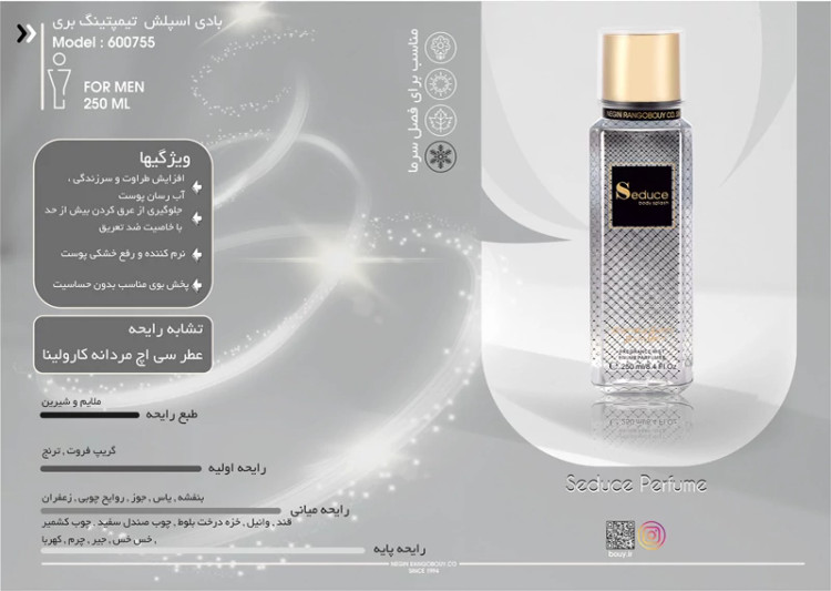 چارچوب مفهومی این بادی اسپلش «پیوند تضادها» است که نتهای شگفتانگیز و شیک را در هم میآمیزد.طیف اصلی بویایی عطر چرمی ، وانیلی و چوبی میباشد نتهای آغازین شامل ترنج و پوست گریپفروت هستند که در نتهای میانی به زعفران و جوز در کنار روایح چوبی، یاس و بنفشه اضافه میشوند. نتهای پایه نیز از کهربا، وانیل، چرم، خزه و شکر شکل گرفتهاند.