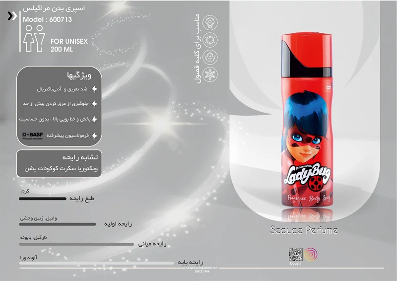اسپری های بدن برخلاف اسپری های دئودورانت که برای ناحیه زیر بغل طراحی شده اند ، برای استفاده در سایر نقاط بدن و پوست در نظر گرفته شده اند . اسپری های بدن عمدتا ارزان تر و کم قدرت تر از عطرها هستند اما قدرت بوزادیی شان 2 برابر است . اسپری های بدن در 2 نوع ضد تعریق و خوشبو کننده تولید میشوند. شرکت نگین رنگ و بوی که اولین تولید کننده دئودورانت در ایران است ، اسپری های سدیوس را با خاصیت دو گانه طراحی کرده و همین امر سبب شده به دلیل تاثیر گذاری سریع و ماندگاری مطلوب در مدت زمان کوتاه مورد استقبال عمومی قرار گیرد .